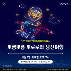 ‘당진 삽교호 드론라이트쇼’ 는 09월 06일 부터 11월 01일까지 매주 토요일 저녁에 삽교호바다공원을 빛으로 물들게합니다.